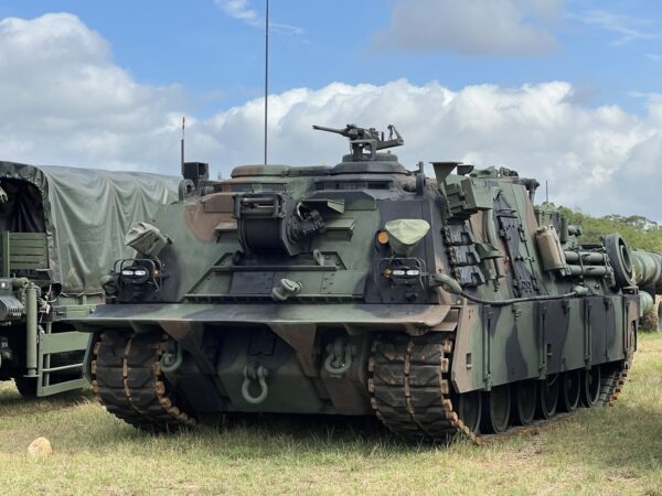 今天584旅聯兵三營展開的隊型,包括2個M1戰車連(每14輛戰車)、1個雲豹8×8甲車裝步連(含2個CM32排、2個CM34排、以及1個CM23迫砲車排),營部連支援部隊則展示M88A2裝甲救濟車、M1070A1/ M1000重拖車、迫砲排(CM22)、反裝甲排(M1167拖式飛彈車)、偵搜排(無人機)、M577/CM33及節點通訊車構成的營指揮所、以及其他附屬裝備,受校部隊雖非全兵力,但可以看出換裝後的即戰力以及高昂士氣。