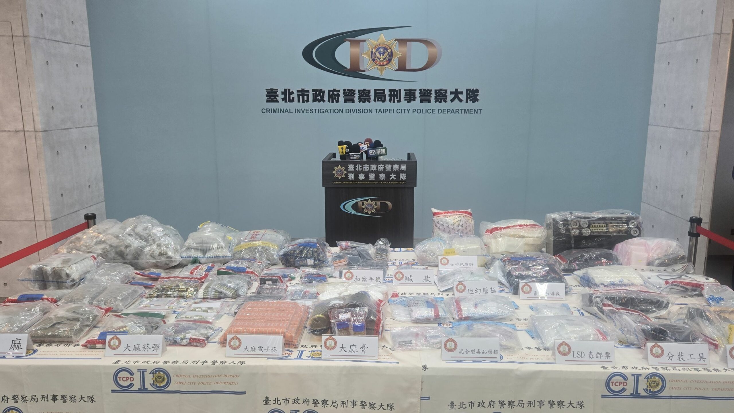 臺北市政府警察局刑事警察大隊偵五隊在日前接獲保大執行路檢勤務查獲毒品案件,隨即組成專案小組向上溯源偵辦,並報請臺北地方檢察署指揮偵辦。案經分析相關資料,並結合網路情資、幣流分析,發現犯罪集團於網路公開販售大麻及各式新興毒品,將毒品分裝後,以「藏寶」埋包方式藏匿於全臺山區及偏僻公園,查該集團運作期間長達2年,危害足跡遍及全臺。