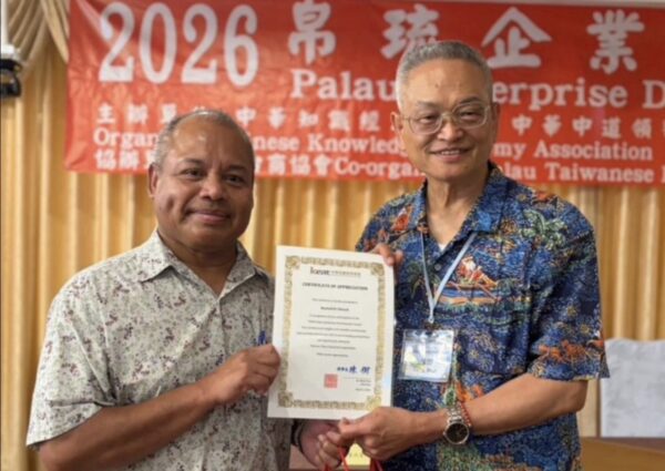 此項論壇是由中華中道領導文化總會與中華知識經濟協會3-4日在帛琉大飯店共同主辦「2026台帛企業發展論壇」,帛琉副總統歐宜蘭與經濟發展人力資源及文化旅遊部長湯杜奇(Ngriraibelas Tmetuchl)親臨致詞,展現帛琉政府對台帛合作的高度重視。台灣與帛琉產官學界四十多位代表,透過專題演講與綜合座談,對經濟成長及產業發展,從綠色永續及藍色經濟雙向視角,深入交流兩國未來合作契機及潛力項目。