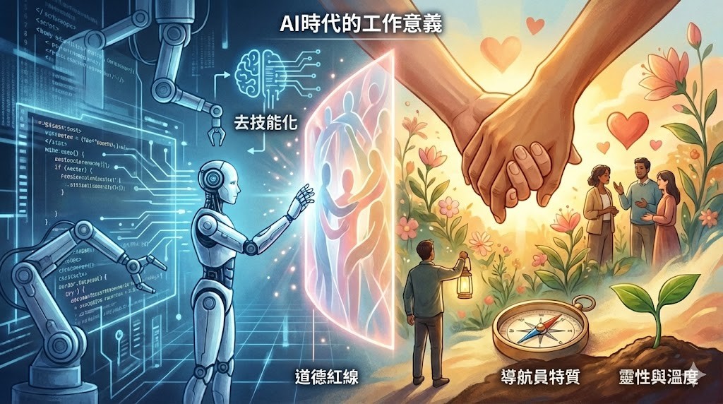 在人工智慧驅動股市大漲之際,引發了白領取代焦慮與專業定義的翻轉。但儘管技術進步,涉及情感與人性的領域仍保有難以跨越的道德紅線。因此教育應從知識吸收轉向培養具備適應力的導航員特質。最終,我們應將這場不可逆的技術革命視為解放機械工作的契機,轉而追求更具靈性與溫度的生命實踐。